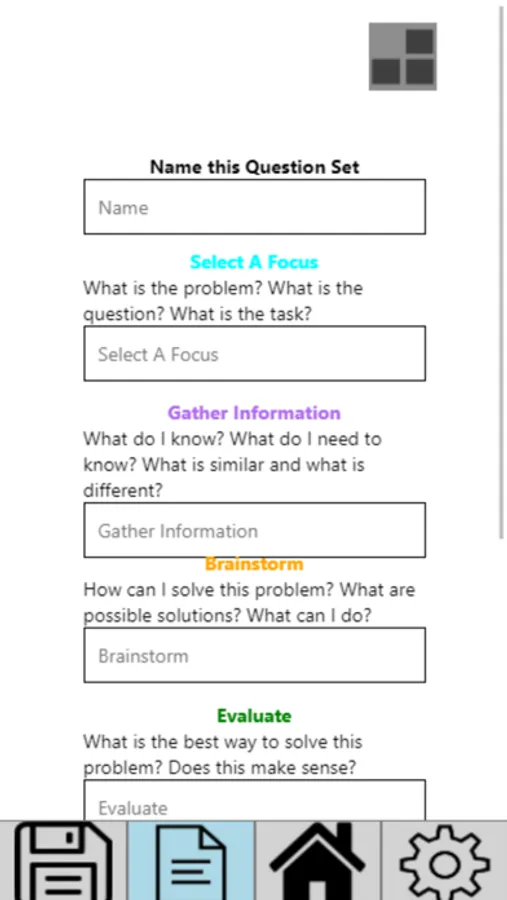 Work through guided self question sets to help you solve complex educational and interpersonal problems in a way that promotes understanding and information retention. Use any of the guided self question sets originally from the SELf-Q learning model book or create your own custom set to help you work through custom problems. Save your questions and come back at edit them any time with your account on any device. Create and manage accounts for your kids where you can assign them questions and view / leave feedback on their work.