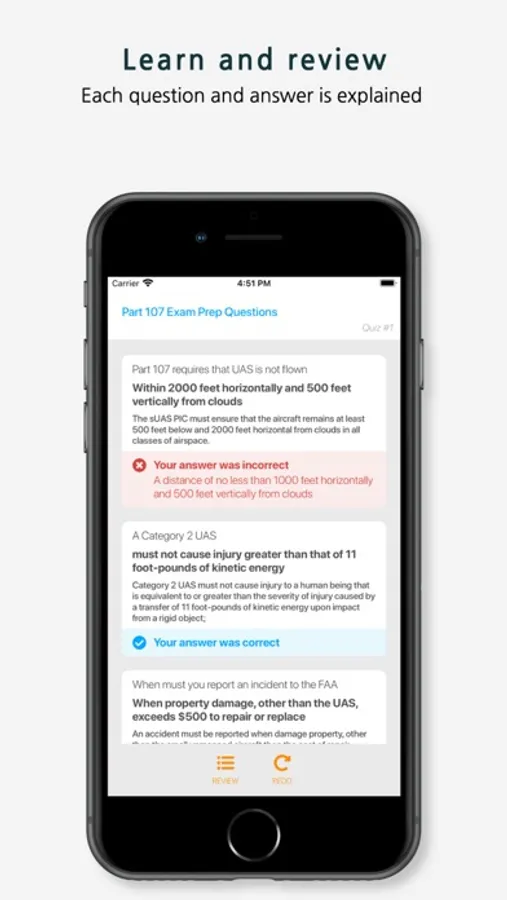 Operating a drone for commercial operations requires that you complete the Federal Aviation Administration (FAA) Knowledge Exam to earn the Remote Pilot Certificate with a Small Unmanned Aircraft Systems (sUAS) rating. The Part 107 Practice Questions app simulate the questions you will encounter in the actual exam. The actual certificate exam contains 60 questions. This app contains 23 free questions and 60 additional questions that you may purchase within the app.