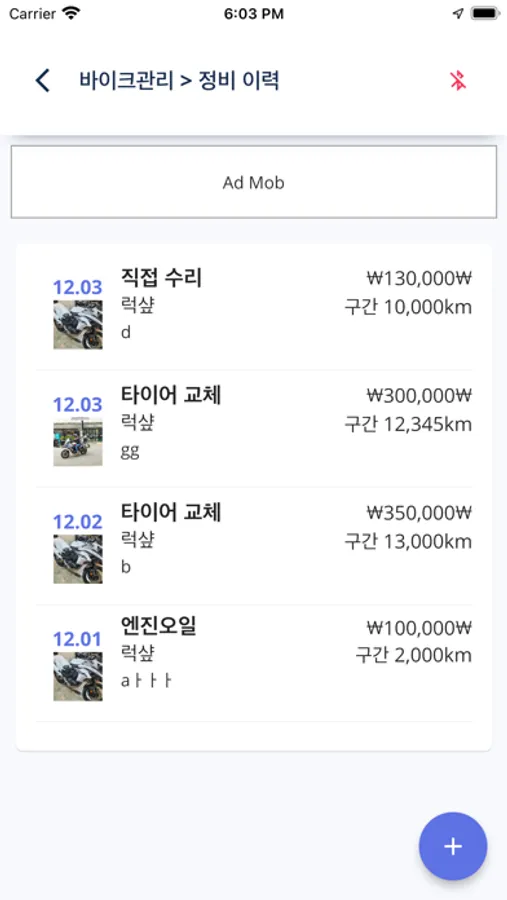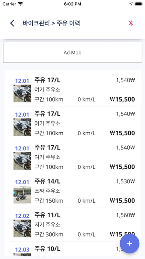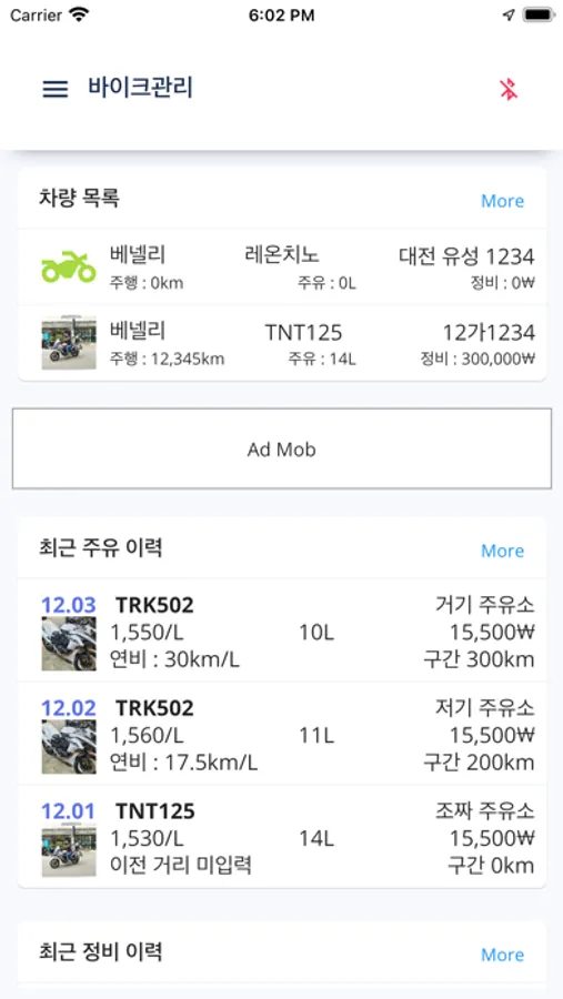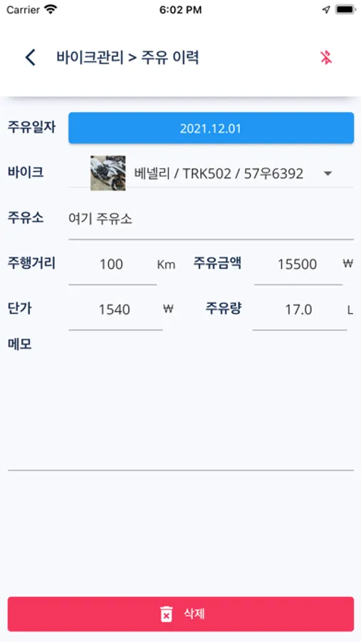 바이크별로 차계부, 주유기록, 연비계산