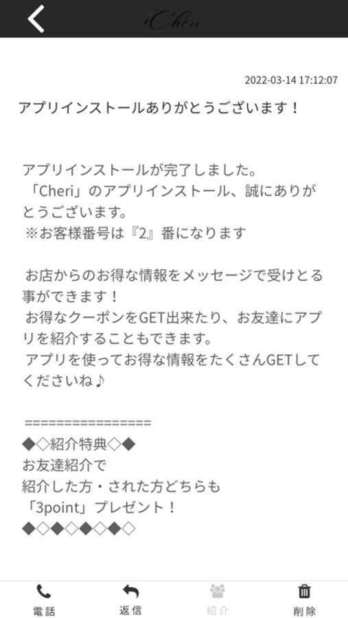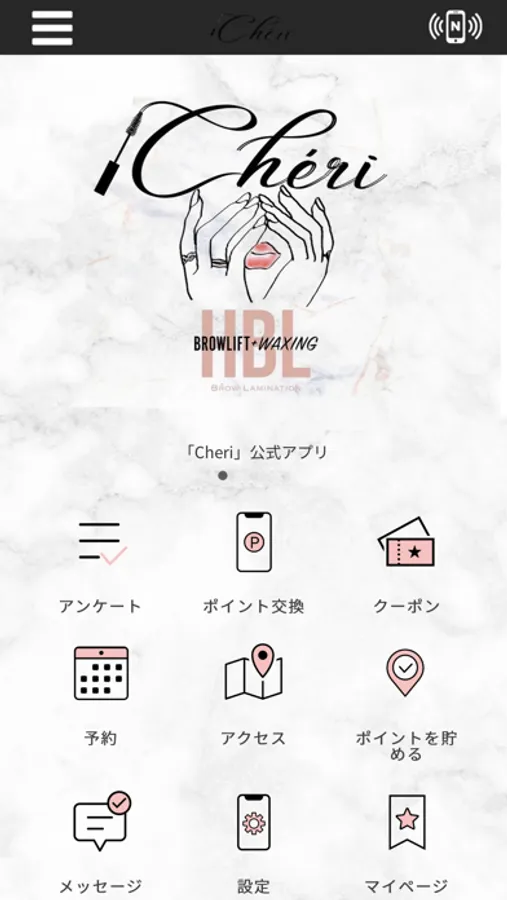 このアプリでは、Cheriの最新情報の受け取りや便利な機能を使う事ができます。
