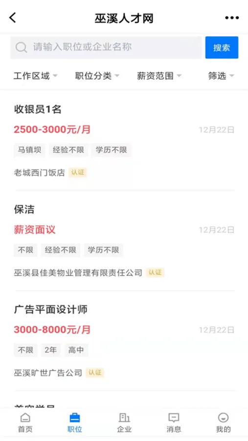 巫溪人才网APP Screenshots