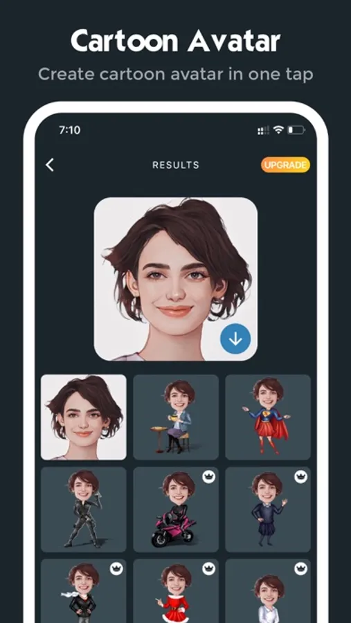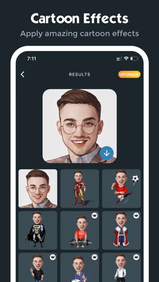Only a few taps that you can turn your picture into a cartoon, no graphic design skills required. Just upload a selfie and choose the best cartoon filter and character that you want.
