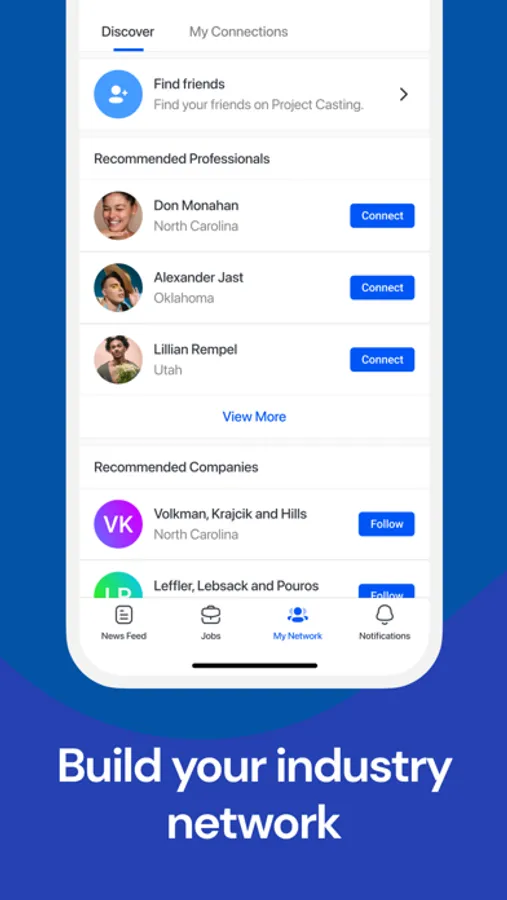 Project Casting's job search filters help you find job opportunities from around the world. Use job search alerts to get notified when a company you follow posts a new job or get notifications for jobs that match your profile, all the while having the opportunity to directly connect with casting directors, producers, influencers, and models in your network. Tap into your network to ask for a referral or to network and create content together. You can also upload unlimited photos and videos to your profile to get the job of your dreams.