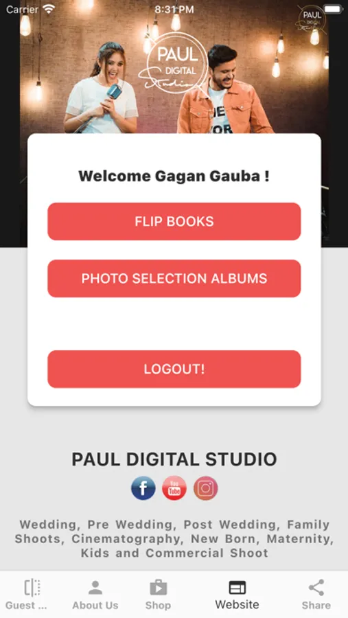 Paul Digital Studio App Provides Photo Selection Services, Flipbooks to their customers. Customers can login and view their events in the form of 3d flip books and also they can do
