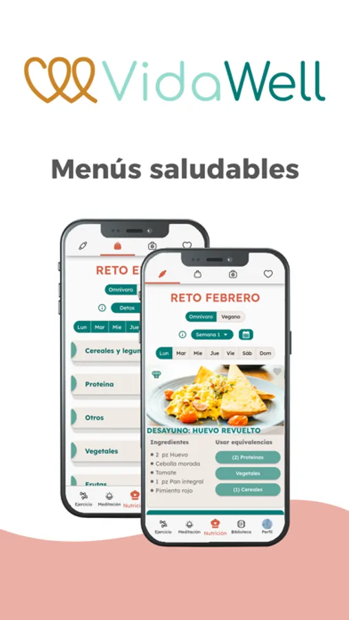 VidaWell es una plataforma diseñada para mujeres que te ayudará a tener un estilo de vida saludable poniendo a tu alcance: planes de nutrición, cursos, recetarios, meditaciones y mucho más. ¡Todo en uno!