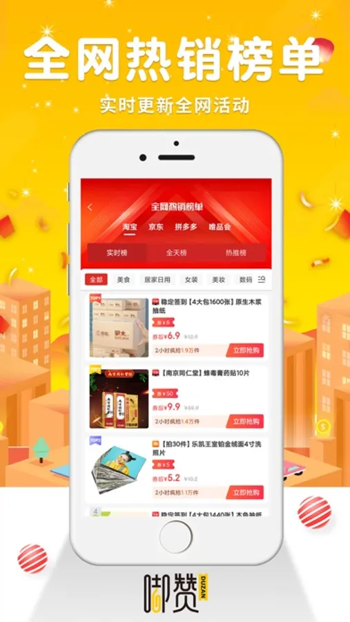 功能:用户复制喜欢的宝贝标题打开嘟赞app,就会获得优惠券,自购省钱。为消费者打通吃喝玩乐购全场景生态,让消费变为一种持续的财富。