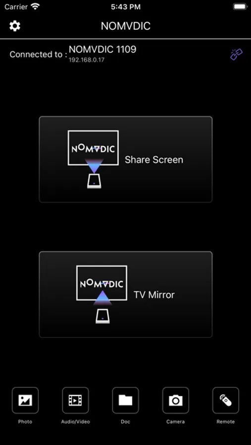 Simply download the NOMVDIC Remote Control app on your smart mobile device (iPhone/iPad), make sure your device and the projector are connected to the same Wi-Fi network, and pair them up in the app to get started.