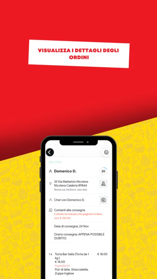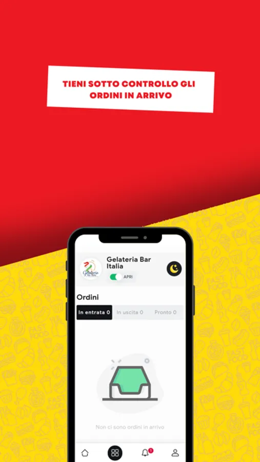 Puoi installare l' app sul tuo dispositivo e stampare gli ordini ricevuti collegando la nostra stampante portatile o richiedendo il nostro terminale POS.