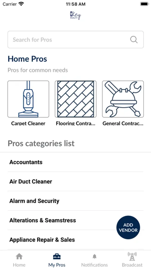 The Key Realty Concierge App allows all Home Moving Concierge clients to find the top rated home pros like cleaners, painters etc. recommended by your Key Realty Concierge agent. You can also get timely reminders for your home such as changing your filter or checking your HVAC unit so that you don't have to remember those minute details to manage your home. Finally you can also get real time messages from your agent on all things happening in your neighbourhood.