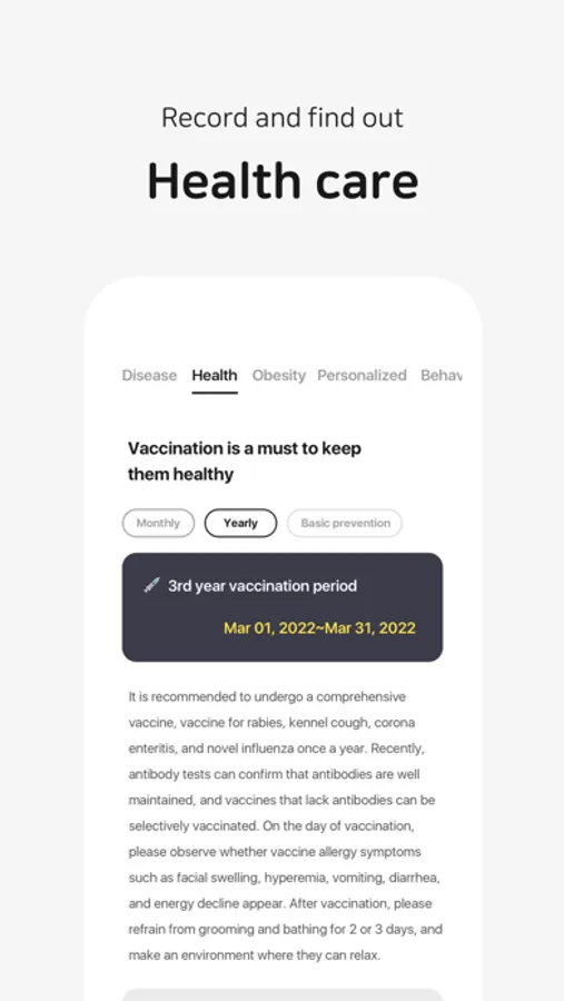 • Record and manage vaccinations, health checkups, and breathing rate during sleep according to their life cycle.