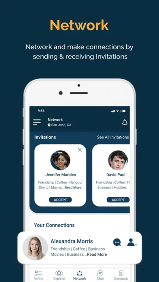 Members can discover other members in the app, and invite and connect with them through a user-controlled and secure process while keeping their privacy and data safety secure.