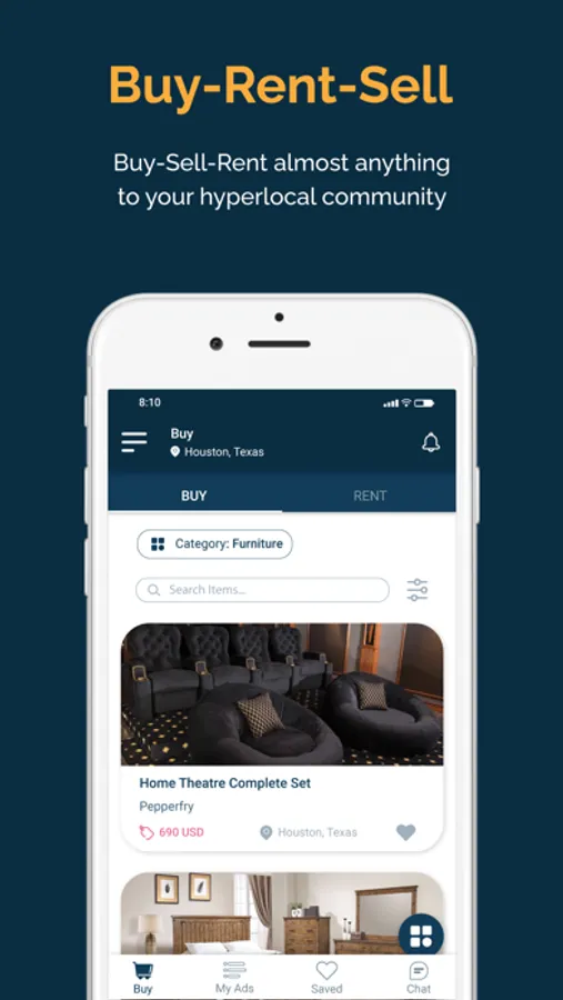 Users can create Buy-Sell-Rent listings for their goods and sell or rent almost everything in their hyperlocal to the community.