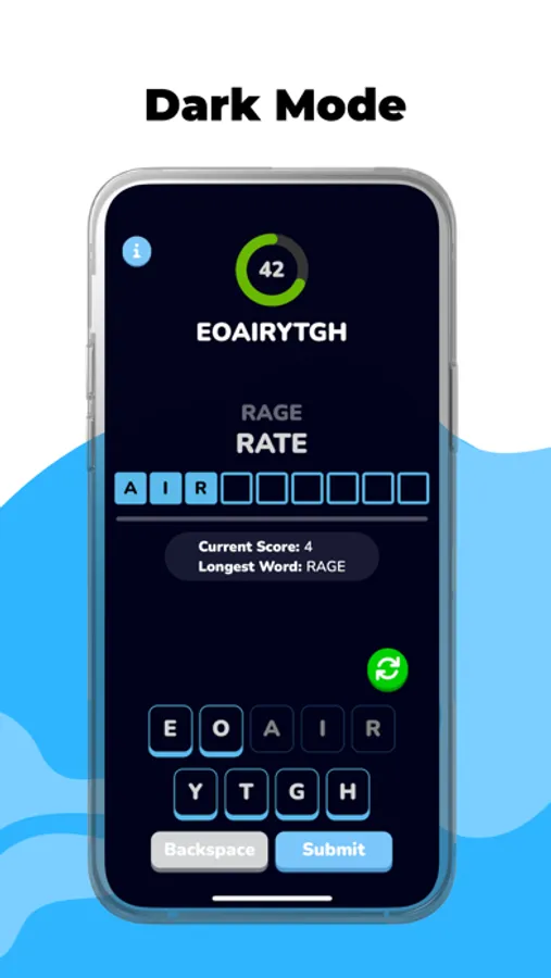 MinuteBeat Words is dark mode compatible so you can play the MinuteBeat word game in any setting. This word puzzle can be played at any time of the day! MinuteBeat is an all around simple, clean, and accessible word puzzle anagram game.
