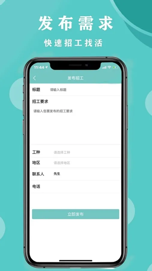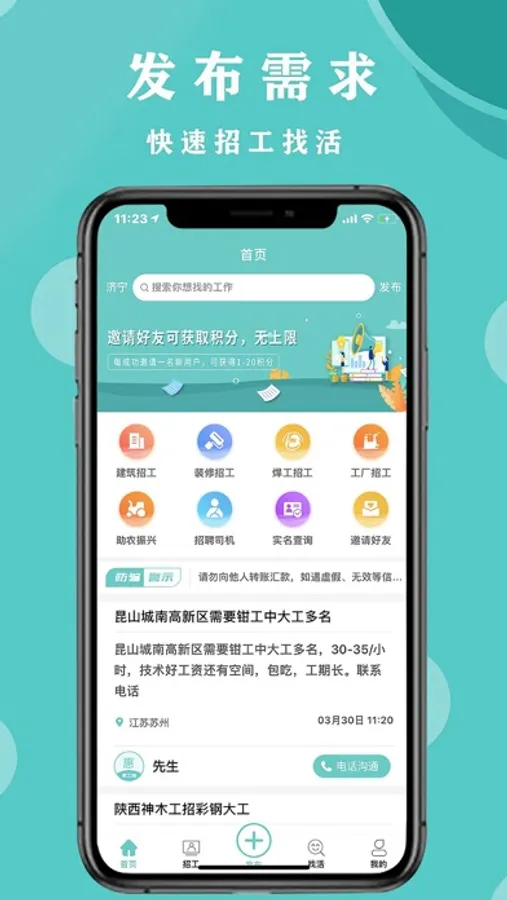 建筑工友可以选择相应的工种发布信息,快速帮您找到合适的工友,优先展示附近工地招工信息,在惠工网发布找活名片,快速找到好工作。