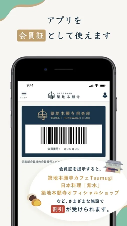 会員証の提示で築地の各協賛店舗での割引が受けられます