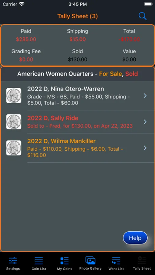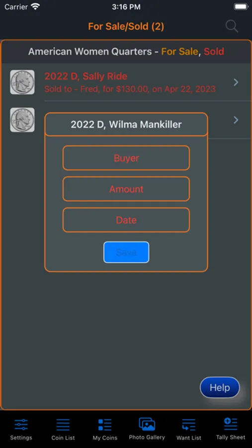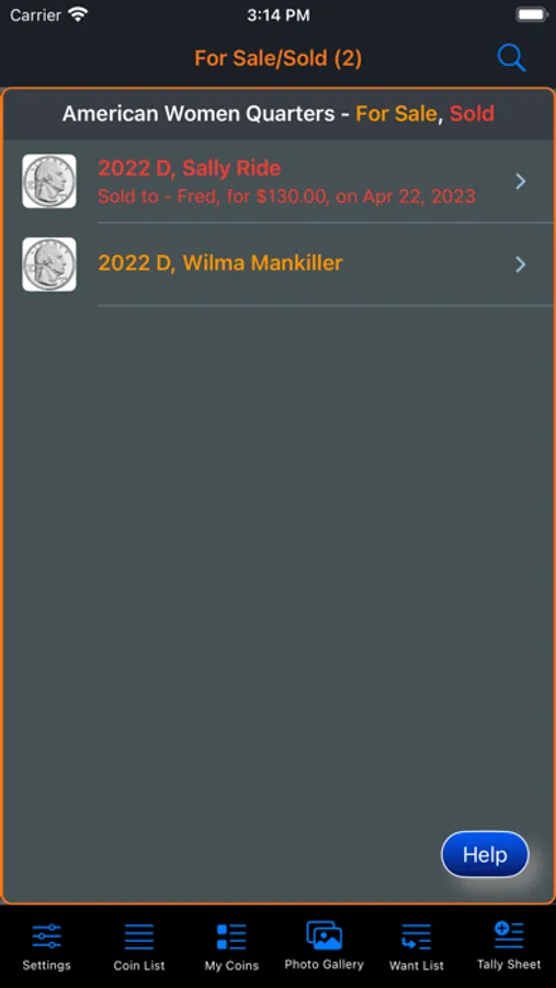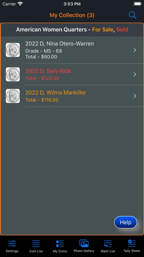 This app will provide the ability for the user to organize, track and manage their collection of coins. Images of each coin can be included with the collection. There is also a means within the app for the user to peruse all of the images in an entertaining manner. The app has three (3) color themes which help to make the app more enjoyable. A running tally of the cost for the entire collection is provided. A want list is also included in the app to allow you to ear-mark coins that you are searching for.