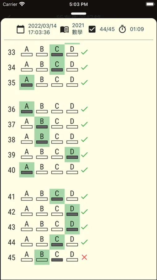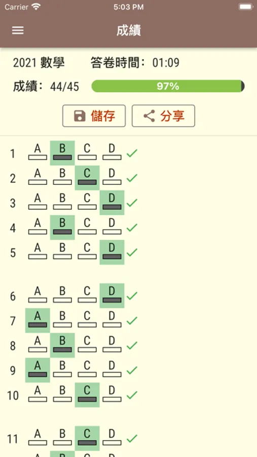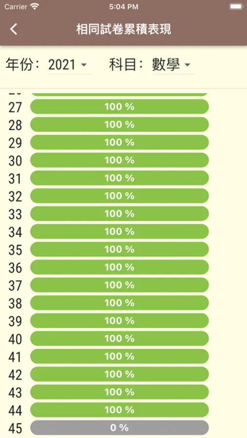 - 設有同一試卷表現概覽,顯示每題命中率,了解自己各題表現