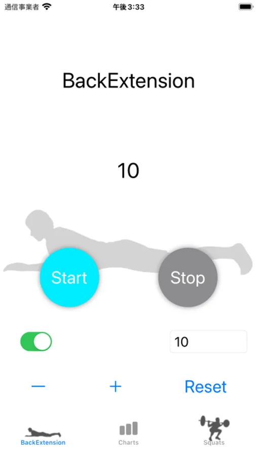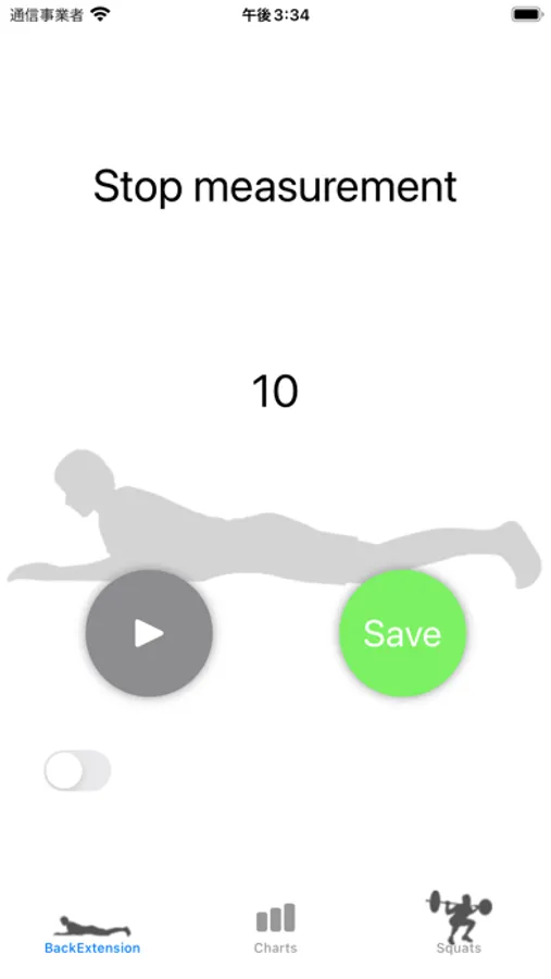 By attaching Airpods (those with an accelerometer), the back extension and squat are automatically counted.