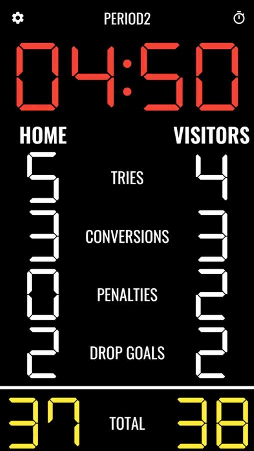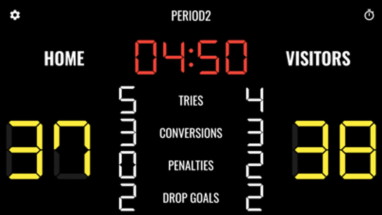 Tap the "TRIES”, “CONVERSIONS”, "PENALTIES” or "DROP GOALS” count to add points:
