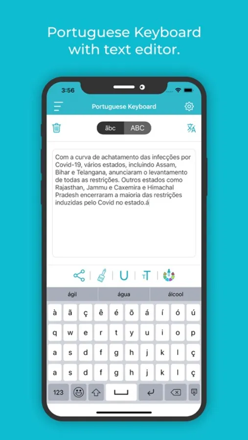 • Once you start typing, you can underline, colour or change the font of any letter to emphasise or de-emphasise it in this best Portuguese Keyboard And Translator for iOS.
