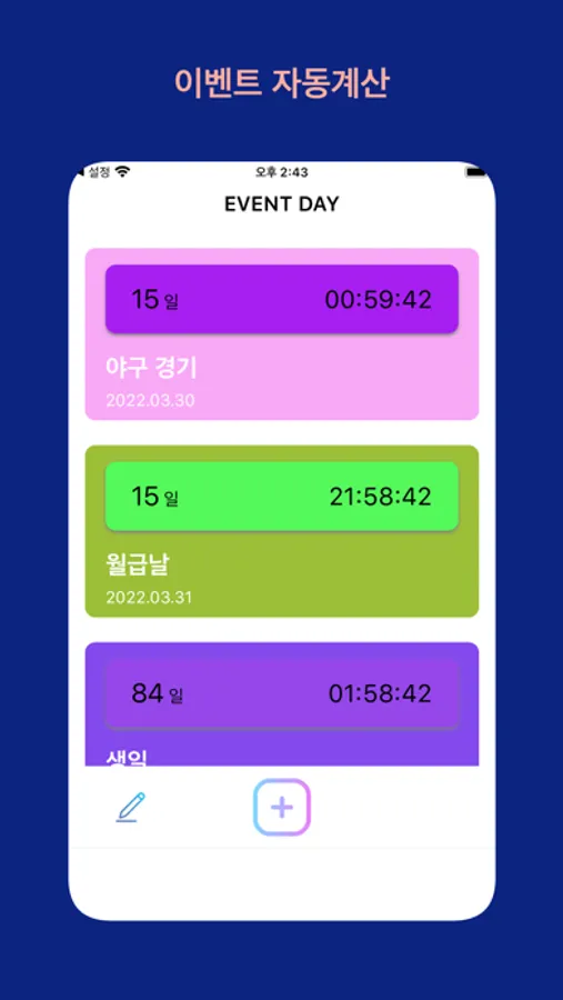 기억하기 어려운 이벤트들을 쉽고 간단하게 등록해보세요.