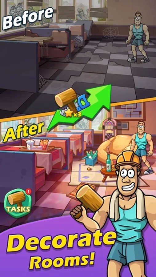 ● Claim decoration items to rebuild your home from the Zombie attack.