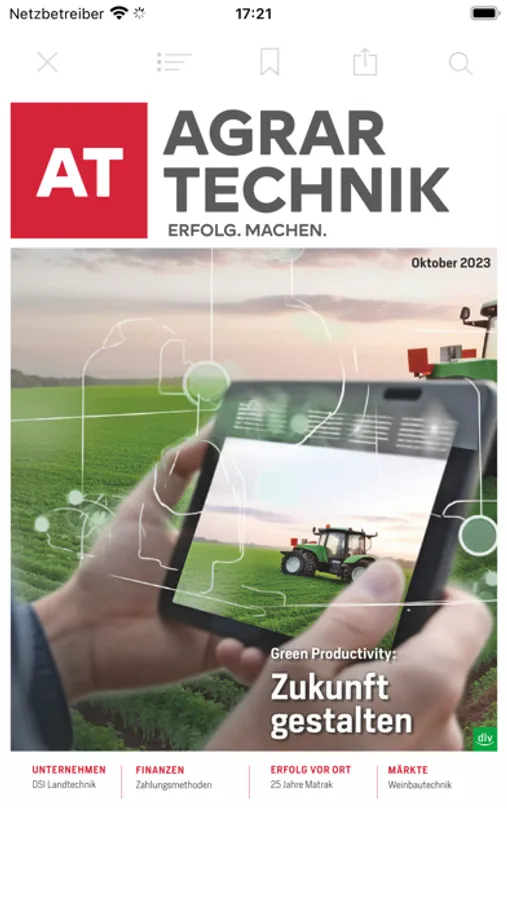 Der dlv bietet das Magazin AGRARTECHNIK auch in einer digitalen Version an. Damit können Sie das gedruckte Magazin auch auf Ihrem Tablet-PC oder Smartphone nutzen.