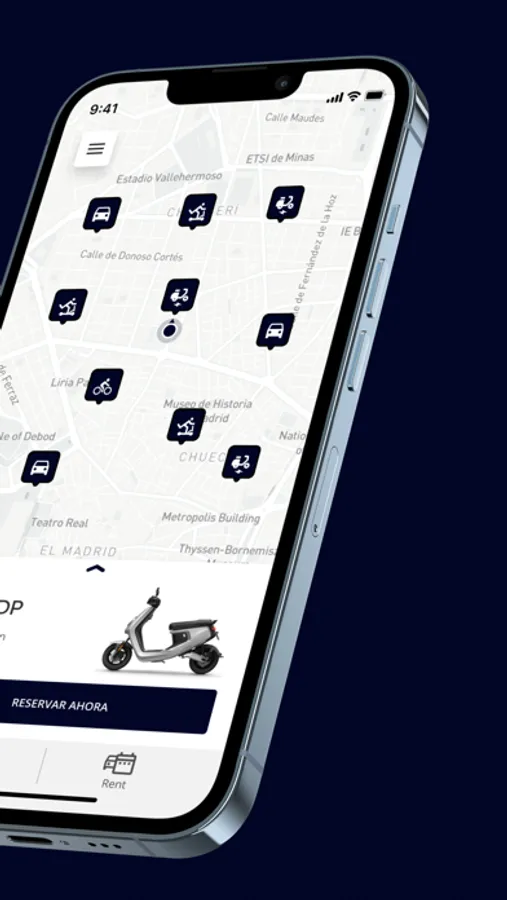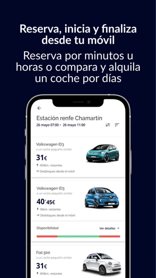 - Busca un vehículo cercano a ti, selecciónalo, y comienza tu viaje, por minutos, horas o todo el día.