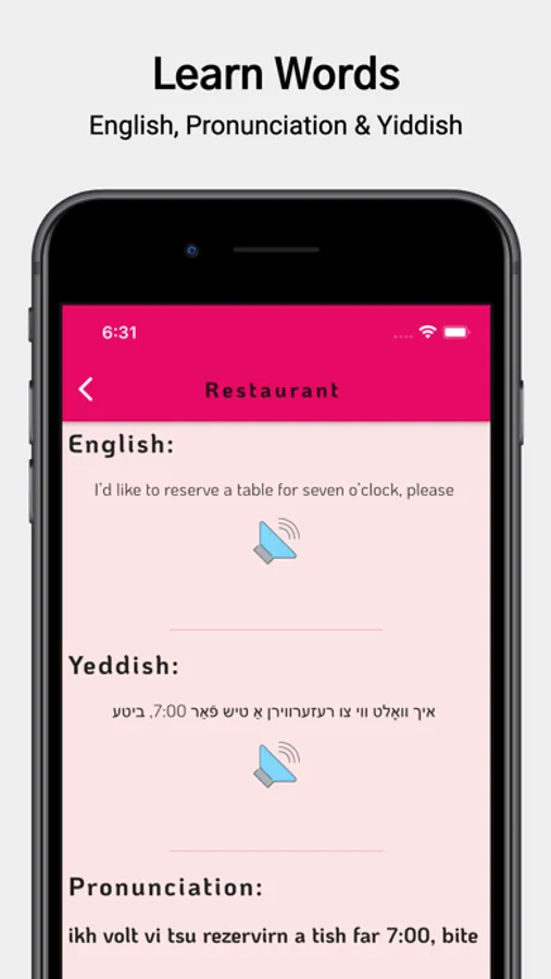• In every lesson, you can listen to the Yiddish word pronunciation as well as see Yiddish word in english language.