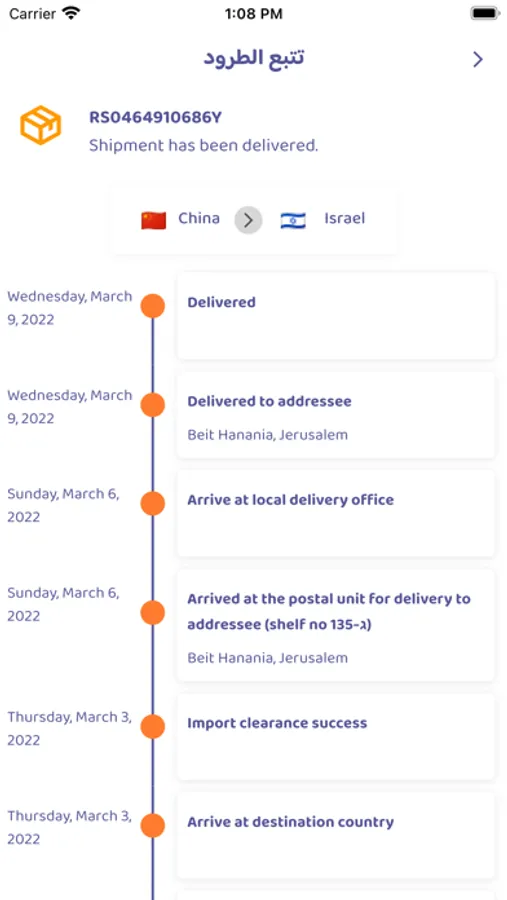 لدينا نقاط استلام في القدس نستقبل مشترياتكم عليها ، ثم نقوم بشحنها إليك في فلسطين.