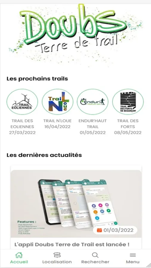 Retrouvez dans une application simple et conviviale, l'ensemble des informations sur les trails du Doubs adhérents à l'association.