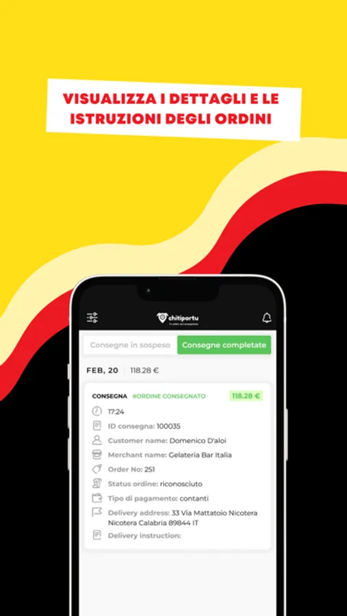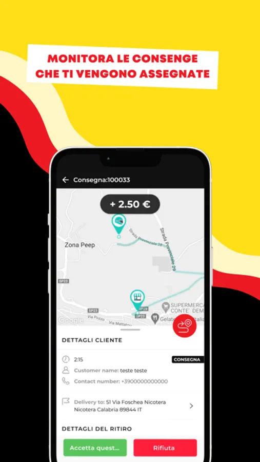 • Ricevere dai negozi partner le notifiche su un ordine da consegnare;