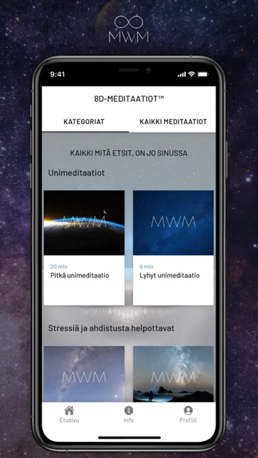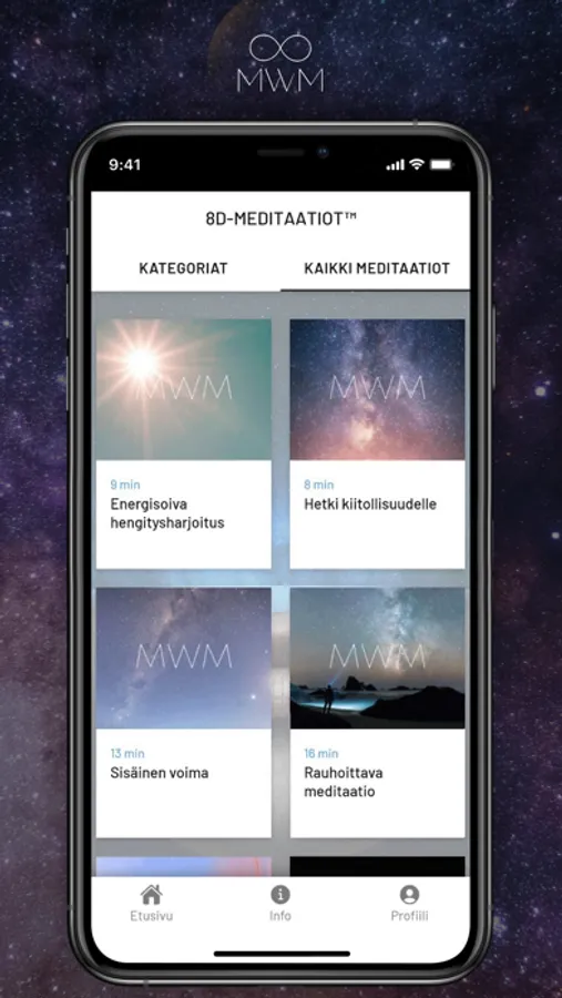 8D-meditaatiot™ sovellus on erikoistunut maailman ensimmäisiin ohjattuihin suomenkielisiin 8D-meditaatioihin™.