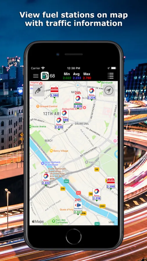 With fuelFR for iOS you can see on map the fuel stations and their prices for all France. The application receives data either according to the geo-location of the device (uses the GPS signal of the device) or based on the location pointed out by the user on the map (with long press). You can also filter out the received data based on the desired brand, fuel type and price age. Fuel types supported are petrol (all types), diesel (all types) and liquid gas (LPG).