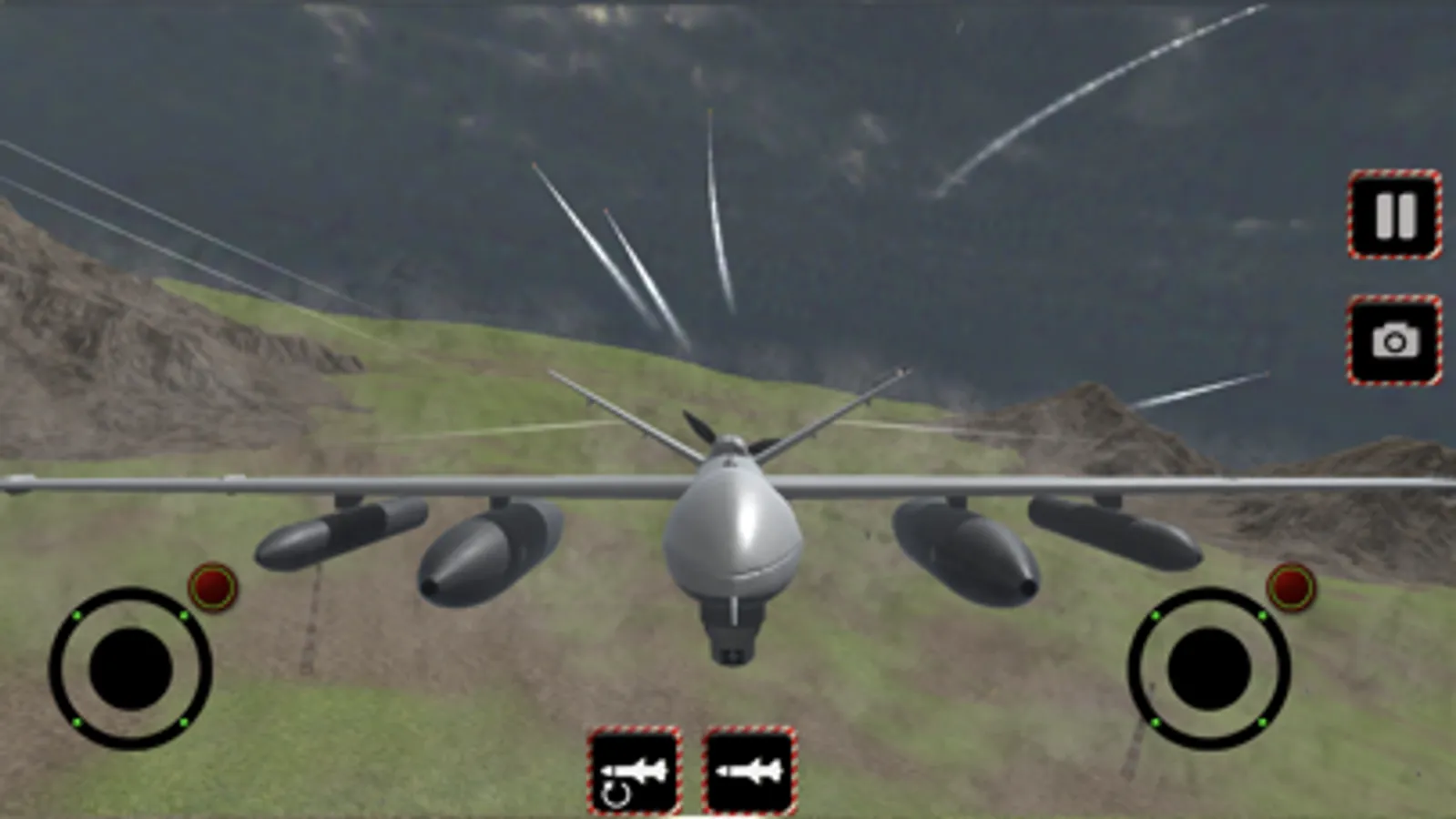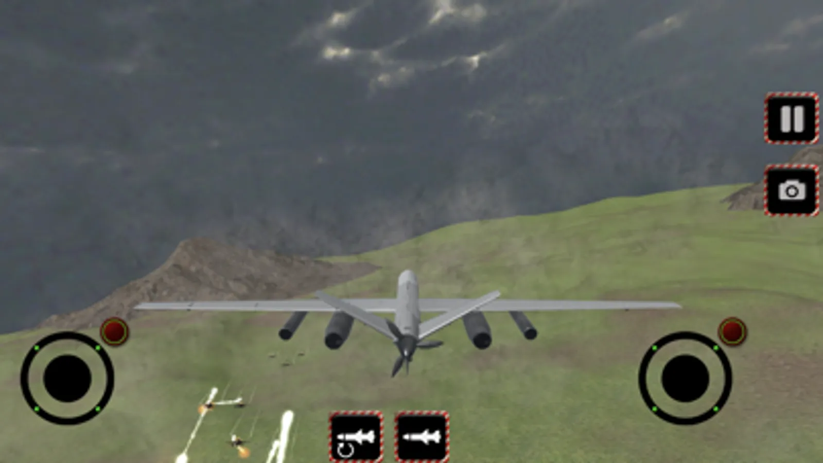 By using the aircraft, you will hit the enemy elements on the ground and in the air with missiles. Using a drone is pretty easy. You can make motion directions with the help of joysticks.