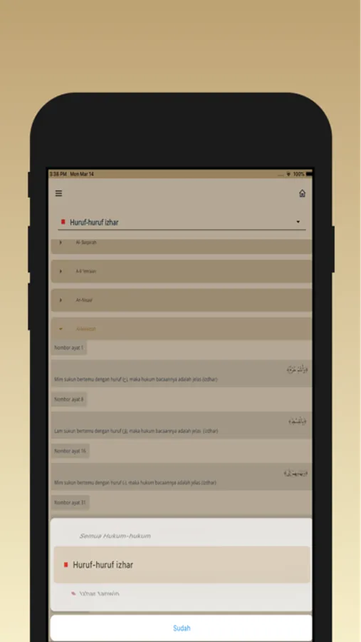 The user should know that we have divided the provisions of reciting the Holy Quran into nine sections. Each section contains the rules that suit it to distinguish it in a special color. Therefore, our purpose was not to absorb all the theoretical provisions. The main purpose is to distinguish the provisions that may be suspected of the novice or average user. The terminology on these nine sections was attached to the statement of each section and the provisions that fall under it and what was neglected for fear of confusion on the user, here is dear user the following clarification: