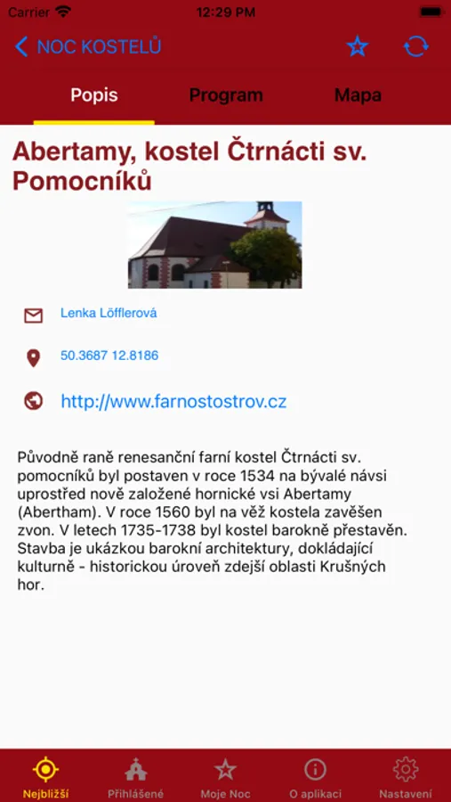 Kostely, které Vás zaujmou, si můžete uložit mezi oblíbené a vytvořit si tak program své vlastní Noci kostelů.