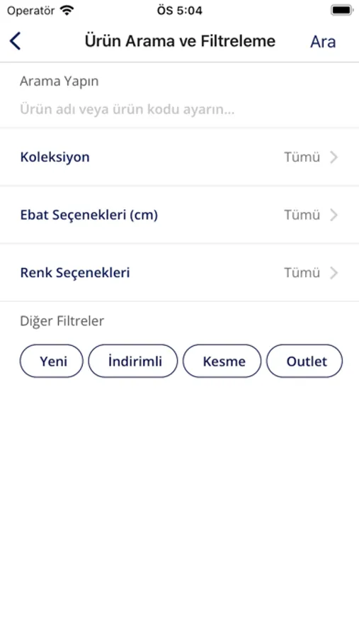 Kategori bazında ürün listesine ulaşılan katalogda ürün özelliklerine, fotoğraflarına, ebat varyantlarına, fiyat ve stok bilgilerine ulaşılabilir. Gelişmiş filtreleme ve arama kısmı kullanılarak aranan ürüne kolayca ve hızlı bir şekilde ulaşma imkânı sunulur.