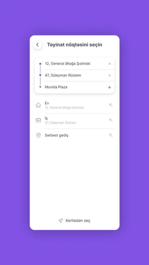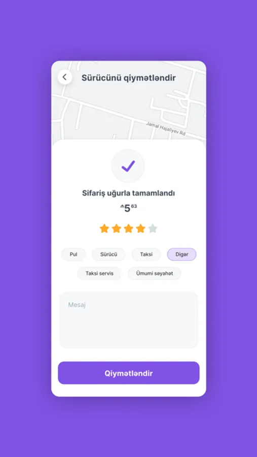 ~ Sistem GPS vasitəsilə Sizin olduğunuz yeri təyin edir. Sadəcə getmək istədiyiniz yeri seçməklə (xəritədə və ya ünvan sətrində) gediş haqqını öncədən öyrənə və istədiyiniz xidməti sifariş edə bilərsiniz.