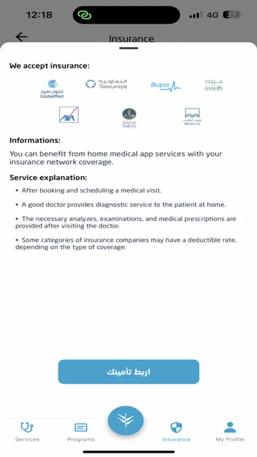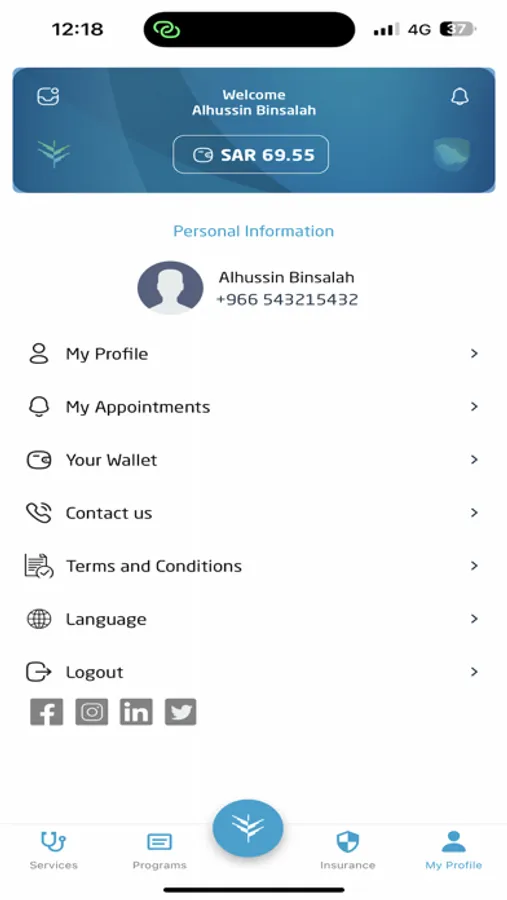 حجز المواعيد وطرح الاستفسارات والاطلاع على الإعلانات الخاصة بالبرنامج وأحدث الأنشطة والحملات التوعوية والترفيهية