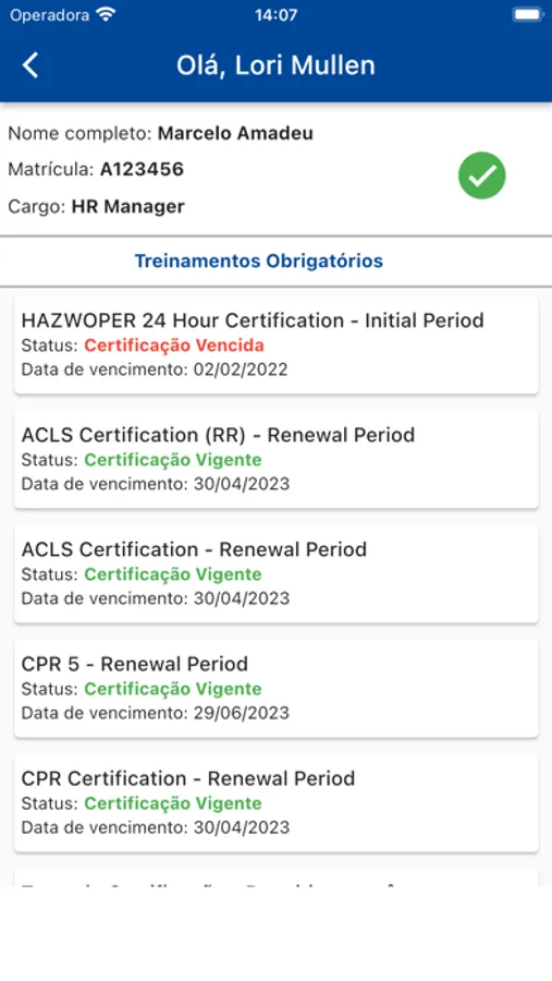 • The safety inspector, auditor or people with access to the application can search for the status of mandatory training of an employee by their user ID or other code that the company chooses to use.