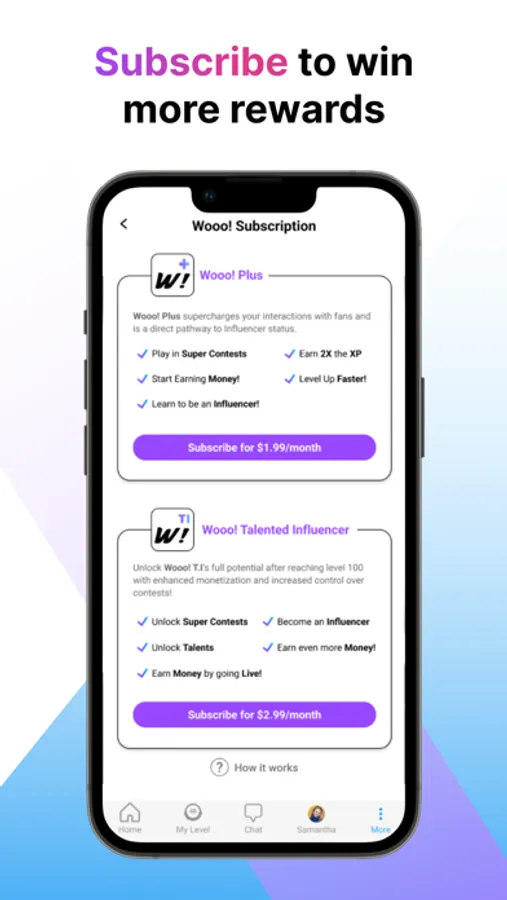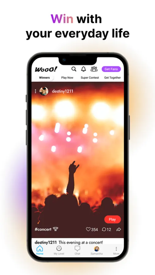 Wooo! is the world’s first instant social gaming app, in which you can Win With Your Everyday Life. As a marketplace for talent, showcasing your unique skills and growing your fanbase is straightforward and easy. Winning is in your hands, so earning money should be too. Enjoy our gaming and social features in a way that is fun and interactive. Ultimately Level Up enough to monetize yourself without any advertisements. Climb the World Rankings and be a part of an ever growing community of people taking part in a new way of life.