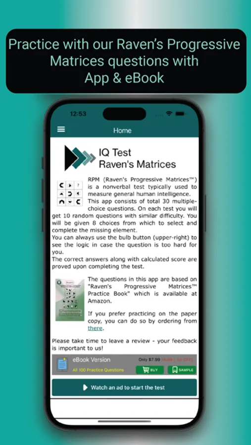 Unleash the power of your mind and push the limits of your intelligence with our groundbreaking mobile app, featuring the renowned Raven's Progressive Matrices IQ Test. Developed by experts in cognitive assessment, this app is your gateway to a world of intellectual growth and cognitive exploration.