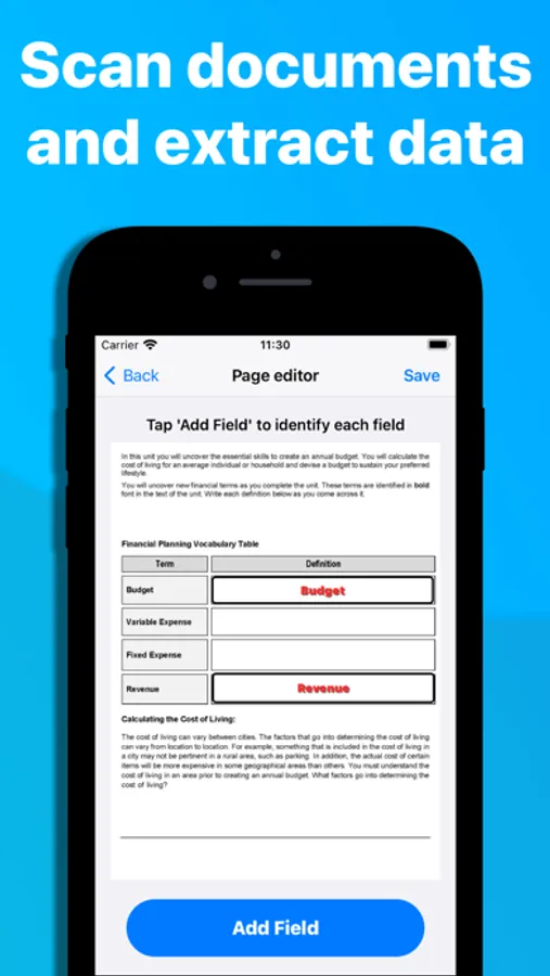 Form Extractor allows you to scan images, extract specific data, build a database and export in multiple formats, including CSV to be viewed as a spreadsheet on compatible office programs.