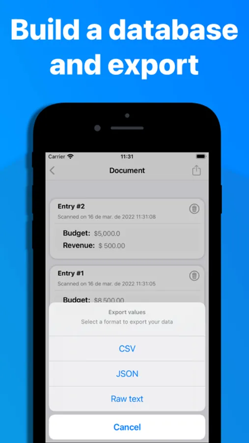 Each time you scan images, captured data is added to a local database that can be easily exported in multiple formats