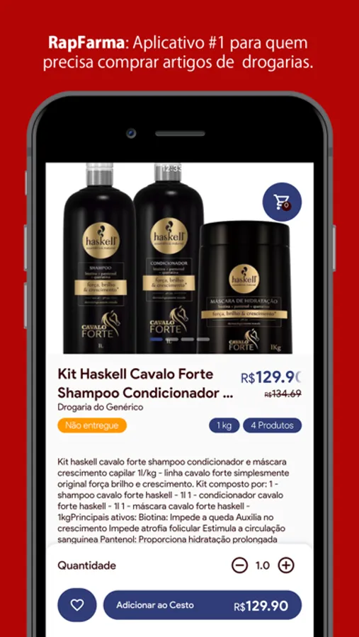 Com RapFarma, você tem acesso seguro e rápido na hora de pedir e comprar seus itens de drogaria e farmácia, que chegam até você por estabelecimentos credenciados de que vendem produtos de alta qualidade. Grandes marcas nacionais e importadas e é claro: os melhores preços.