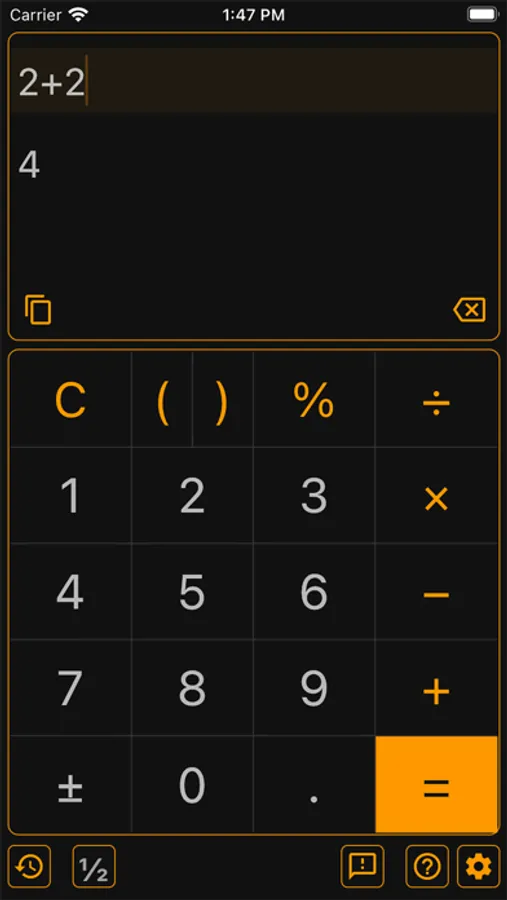 ‒ Tap on a history item if you want to copy it to the calculator, press and hold if you want to copy result of calculation.