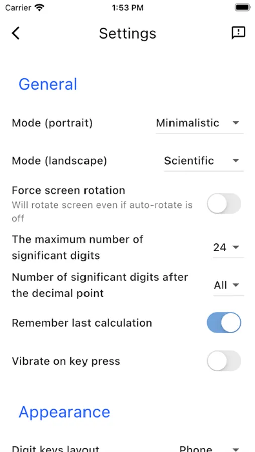 * You can set up what type of calculator to show in the portraitlandscape modes in settings.