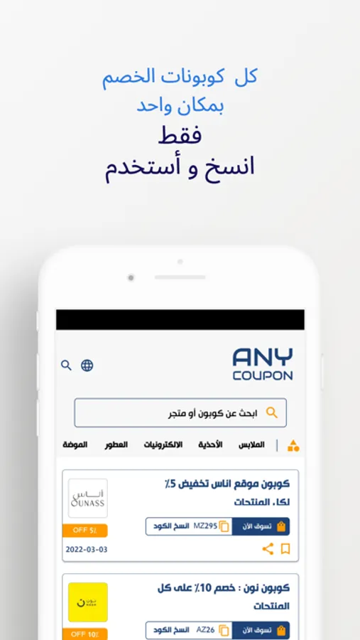 تطبيق أي كوبون any coupon يوفر لك كل كوبونات خصم المتاجر الإلكترونية و كوبونات خصم متاجر في السعودية و الخليج و الوطن العربي بتطبيق واحد يوفر لك الكثر من الخيارات و التخفيضات التي تجعل التسوق متعه حقيقية