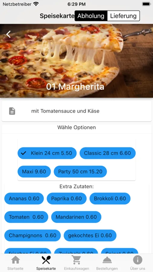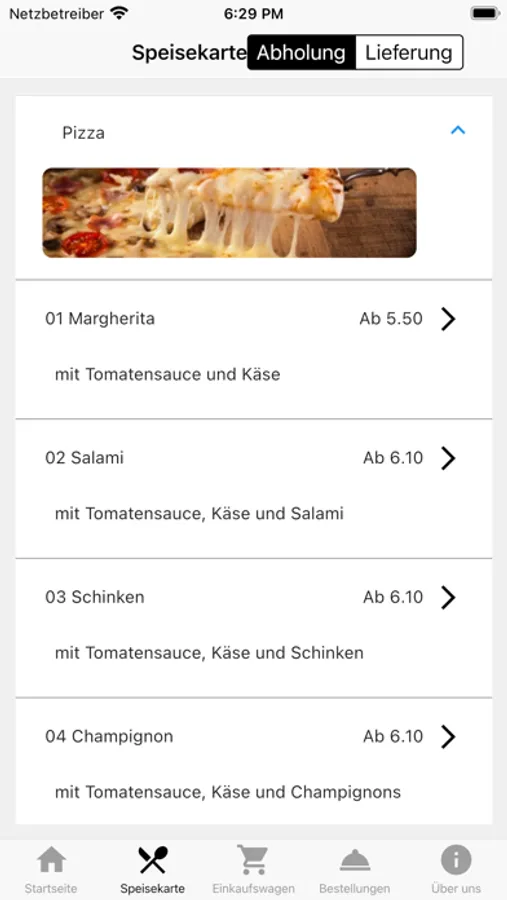 Wir liefern ofenfrische Pizza, feine Pasta, herzhafte Fleischgerichte, frische Salate und Getränke.